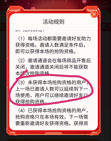 昨天晚上,我們一群人在玩兒拼多多的9.9元的搶購,其中有一個(gè)運(yùn)營的朋友就來吐槽:「我明明這一場已經(jīng)邀請(qǐng)了足夠多的人,只是我沒有搶到9.9元的購買資格,規(guī)則不是說邀請(qǐng)人數(shù)延續(xù)到下一場使用嗎?怎么要我重新邀請(qǐng)呢?」