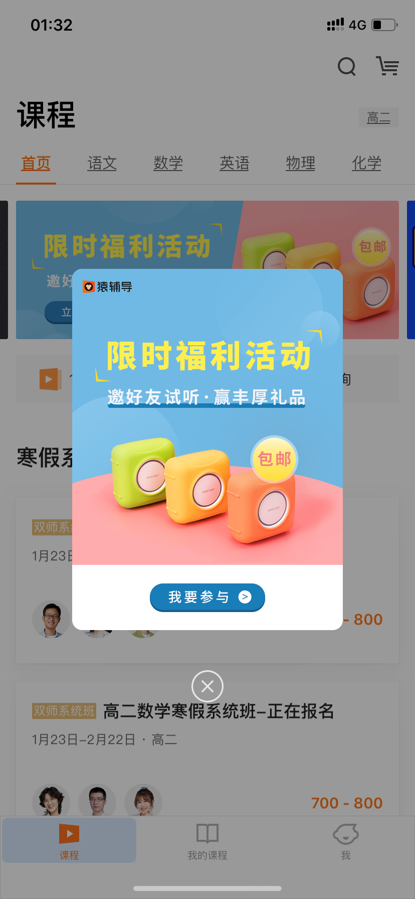 被邀請(qǐng)家長(zhǎng)在掃碼后進(jìn)入落地頁(yè),非常直觀,簡(jiǎn)潔,且會(huì)先彈出優(yōu)惠券彈窗,流程設(shè)計(jì)精巧。