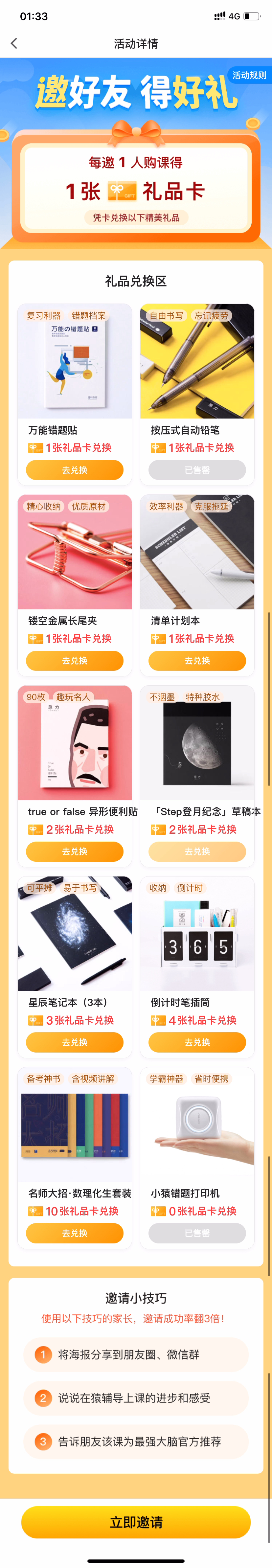 猿輔導(dǎo)猿輔導(dǎo)邀好友試聽(tīng)贏獎(jiǎng)品轉(zhuǎn)介紹活動(dòng)