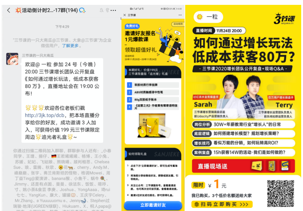 這場(chǎng)直播課最終是為了轉(zhuǎn)化正價(jià)課,社群人數(shù)越多,轉(zhuǎn)化量就越高。所以通過(guò)裂變對(duì)社群人員最大化。