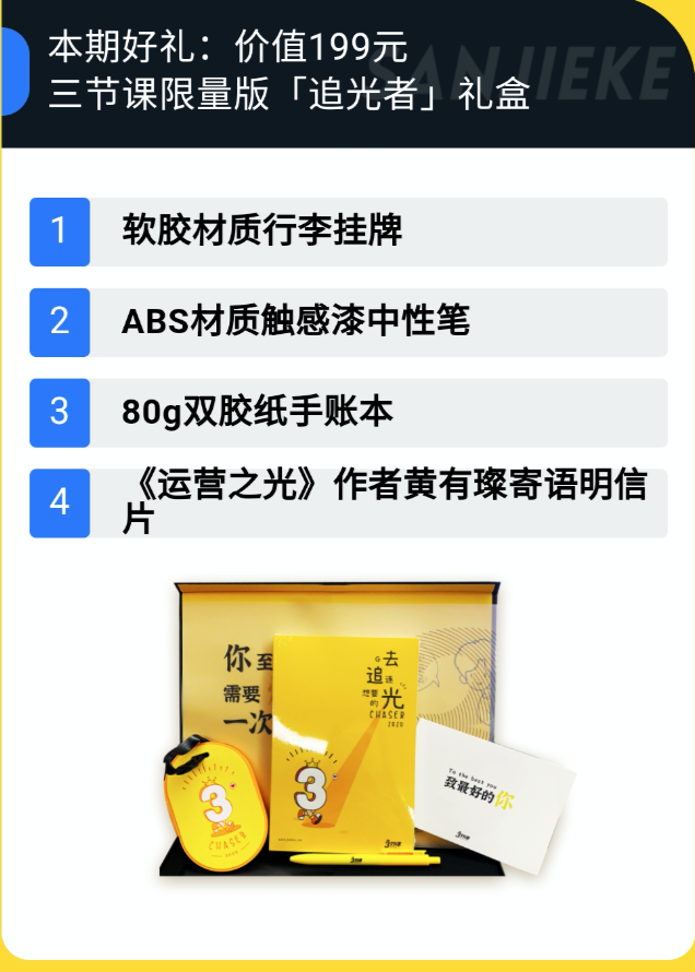 分享此課程,完成3個(gè)人支付,即可拿走價(jià)值199元的三節(jié)課限量版禮盒