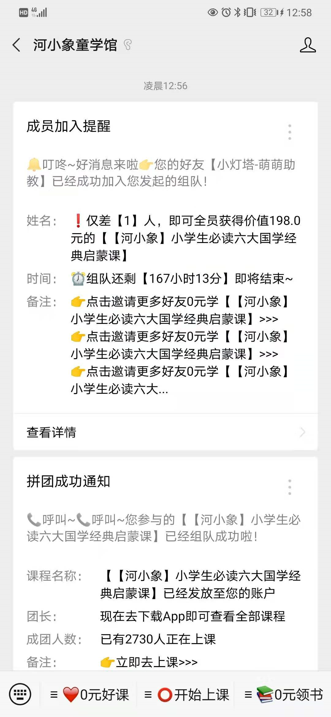 最后,在分享過程中,發(fā)起拼團的用戶會收到成團的信息,了解最新的成團動態(tài),并且成團后第一時間提醒用戶。