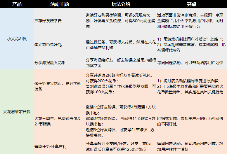 火花思維作為業(yè)內(nèi)轉(zhuǎn)介紹做的非常成功的公司,個(gè)人覺得和其豐富的課程產(chǎn)品、多樣的玩法、以及精細(xì)化的運(yùn)營動(dòng)作有莫大關(guān)系。
