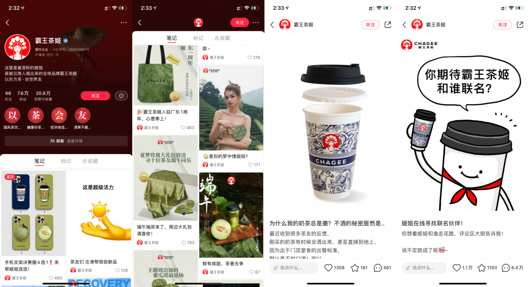 霸王茶姬內(nèi)容營銷:筆記類型主要包括新品宣傳,飲品種草、生活記錄等。我們看到上方圖片筆記內(nèi)容,通過提問以及征收用戶意見,獲得了高互動量。霸王茶姬在小紅書上的爆款產(chǎn)品主要是其招牌飲品“霸王奶茶”。霸王奶茶的賣點是口感濃郁、茶香濃郁、奶香香濃,同時還提供了多種不同的口味和搭配,滿足了不同用戶的需求。在小紅書上定期推出各種優(yōu)惠活動,如每周會員日85折、打卡送飲、限時特惠、新品試飲等,以及節(jié)日+放松新生活的運動風(fēng)想用戶展現(xiàn)其運動精神,吸引用戶的參與和購買。