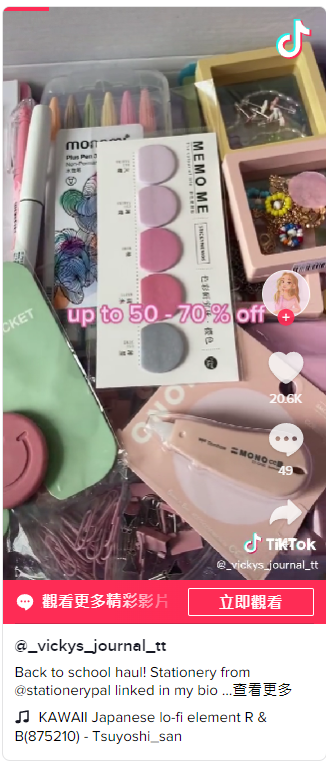 在Stationary Pal 與 TikTok影響者@vickys_journal_tt 合作的案例中,該品牌為博主的粉絲提供了一個(gè)特殊的折扣代碼供他們使用,并為他們參加了一場(chǎng)競(jìng)賽——該視頻的觀看次數(shù)已經(jīng)是該品牌自己的 TikTok 帳戶上發(fā)布的平均視頻的 10 倍。