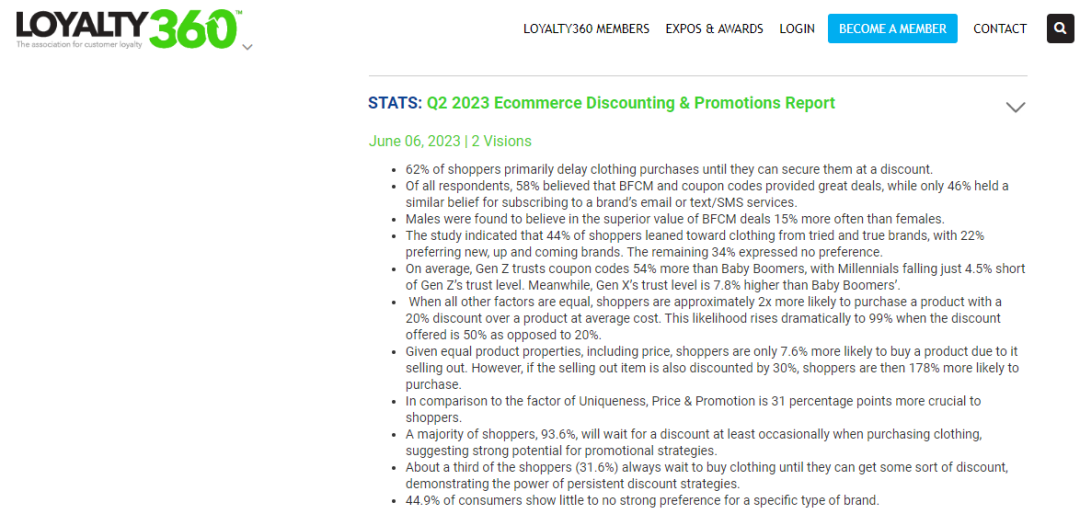 以對(duì)在研究機(jī)構(gòu)2Visions此前的一項(xiàng)調(diào)查顯示,有62%的美國(guó)服裝購(gòu)物者在下單之前會(huì)等待該商品打折。當(dāng)商品打8折時(shí),被購(gòu)買的可能性是原價(jià)商品的2倍,而打5折的商品比只打8折的商品購(gòu)買率更是高出99%。這意味著,零售商商品價(jià)格越低,消費(fèi)者購(gòu)買的可能性越大。