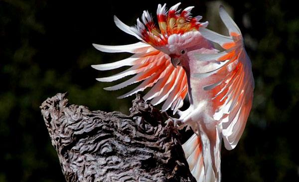 米切氏鳳頭鸚鵡:別名彩冠鳳頭鸚鵡_車輪冠鳳頭鸚鵡_米契爾少校鳳頭鸚鵡_馬修氏鳳頭鸚鵡,為鸚形目、鳳頭鸚鵡科、鳳頭鸚鵡屬鳥類,原產(chǎn)于大洋洲澳大利亞特有品種,分布于昆士蘭中南部經(jīng)新南威爾斯、維多利亞西北部、北省中南部、南澳大利亞到西澳大利亞。棲息于干燥與半干燥有樹的開闊地區(qū),通常成對或一小群活動,與其他種類的鳳頭鸚鵡群聚。1831年命名,共2個亞種。在許多地方的數(shù)量已遭受威脅,人為盜補、棲息地破壞是主要原因,與粉紅胸鳳頭鸚鵡爭巢穴也是數(shù)量不多原因之一。