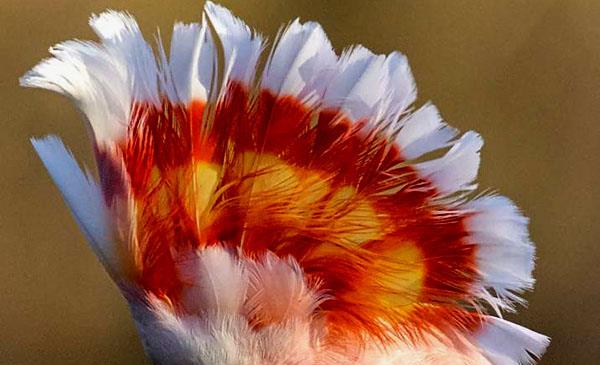 體羽白色,頭上有紅黃相間、色澤分明美麗的彩色冠羽,很像印第安首領(lǐng)的頭飾。美麗的冠羽使其身價頗高,是能合法買賣進口的鳳頭鸚鵡中價位最貴的之一。在鸚鵡養(yǎng)殖業(yè)也不普遍,全世界的總數(shù)量應低于2萬只。