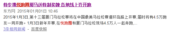 如果有人問悅跑圈轉(zhuǎn)折性的事件是哪次,我會告訴他是廈門馬拉松得算一次,廈馬是不發(fā)半馬獎牌,當時我們特牛的說我們來發(fā)。整個事情從確定到執(zhí)行只要很短時間,但機不可失。這事確定后,我第一時間對外做宣傳,和特步的同學(xué)確定,然后第一時間在各個平臺講出去。吹出去的牛要想收回來總會很難的,自己先把自己逼出去。
