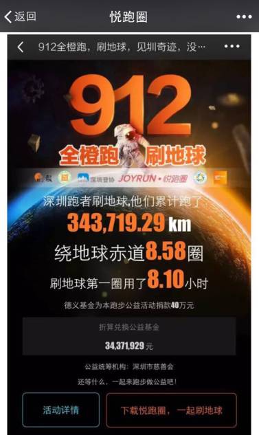 印象很深的是那天自己在法國波爾多準備跑馬拉松,在大巴車上,同事給我說,已經(jīng)刷地球8圈了。這個數(shù)字意味著是當時正常情況下悅跑圈深圳跑友的好幾倍。