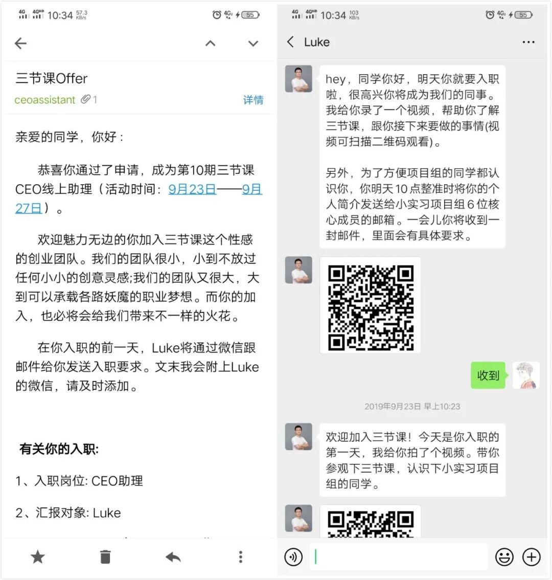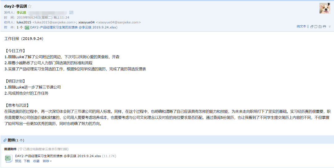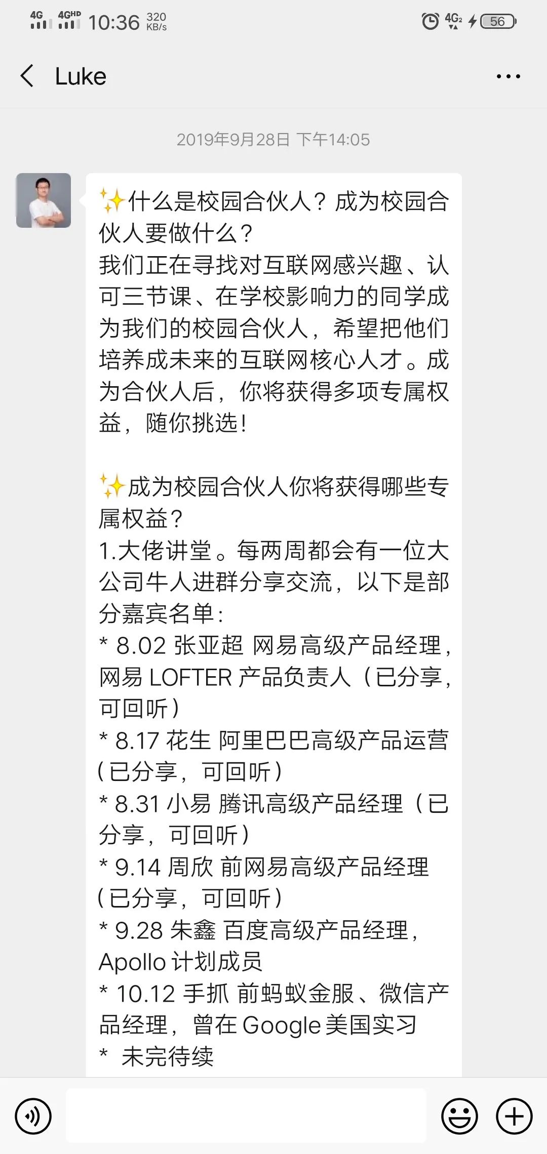 當(dāng)年5天全部完成后,就會(huì)獲得三節(jié)課CEO簽發(fā)的實(shí)習(xí)證書。但這并沒有結(jié)束,在第二天,Luke會(huì)微信給所有本期的學(xué)生發(fā)一條微信,內(nèi)容如圖: