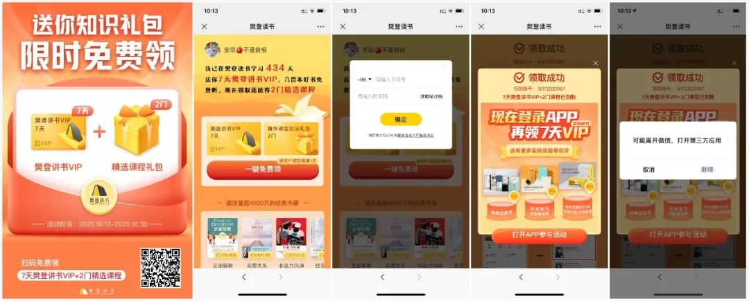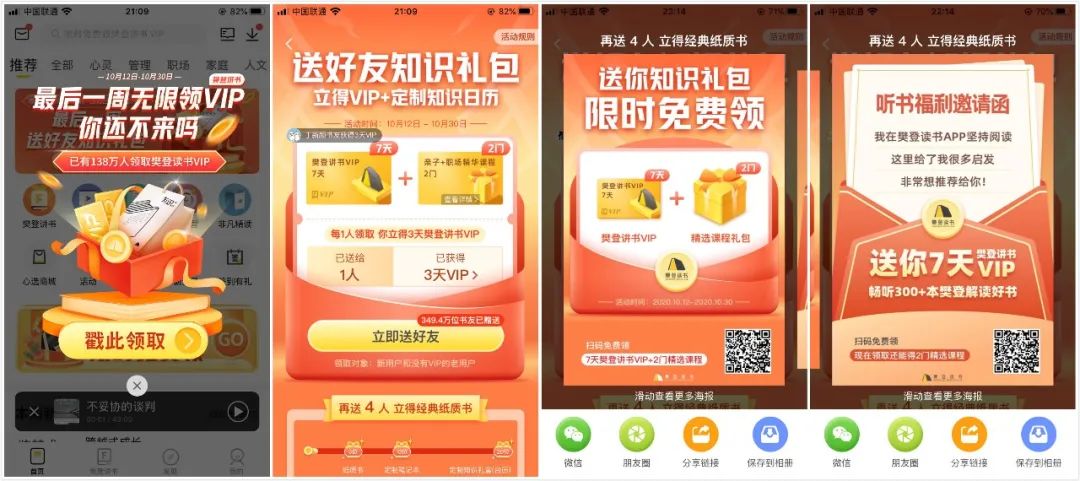 1)再送4人立得經(jīng)典紙質(zhì)書——指示動(dòng)作非常明確,讓用戶清晰知道自己還差幾個(gè)人就可獲得哪個(gè)禮品。