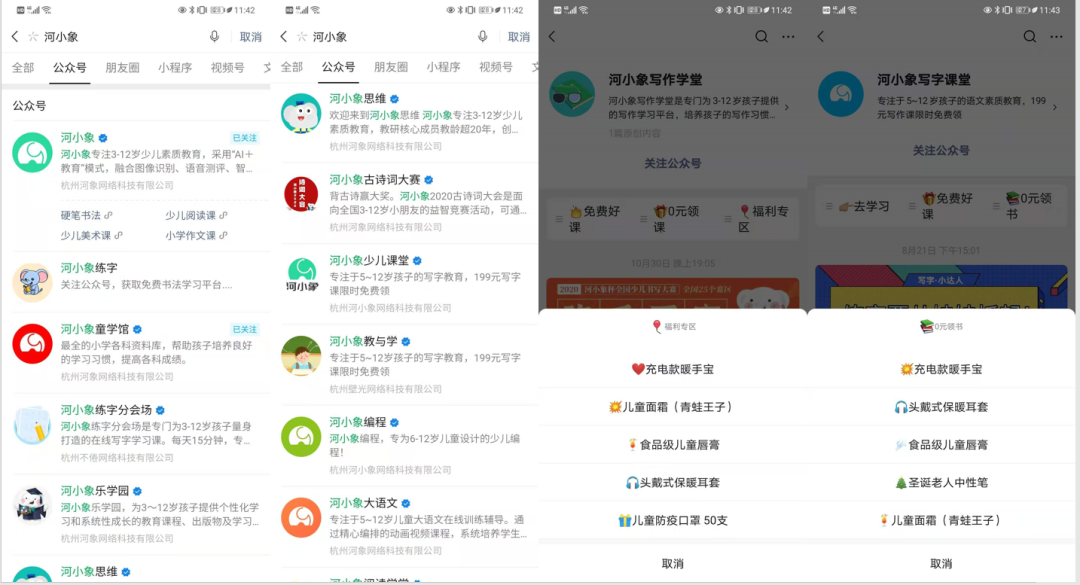 仔細分析河小象的公眾號矩陣不難發(fā)現(xiàn),河小象針對自己旗下的每一個賽道【編程、寫字、美術(shù)、計算等】都有設(shè)置單獨的公眾號,方便自身的互相導(dǎo)粉