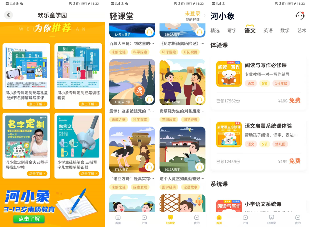 河小象,是杭州河象網(wǎng)絡(luò)科技有限公司旗下品牌,成立于2017,以“為孩子提供有效、有趣的普惠教育”為使命,是一個專注3-12歲少兒素質(zhì)教育的在線教育品牌。采用“AI+教育”模式,融合圖像識別、語音測評、智能匹配、人機交互及大數(shù)據(jù)分析等創(chuàng)新科技,自主研發(fā)課程。以“大語文綜合素養(yǎng)”為核心產(chǎn)品,同時推出了寫字、書法、美術(shù)等明星產(chǎn)品,致力于幫助孩子提高綜合素養(yǎng)。