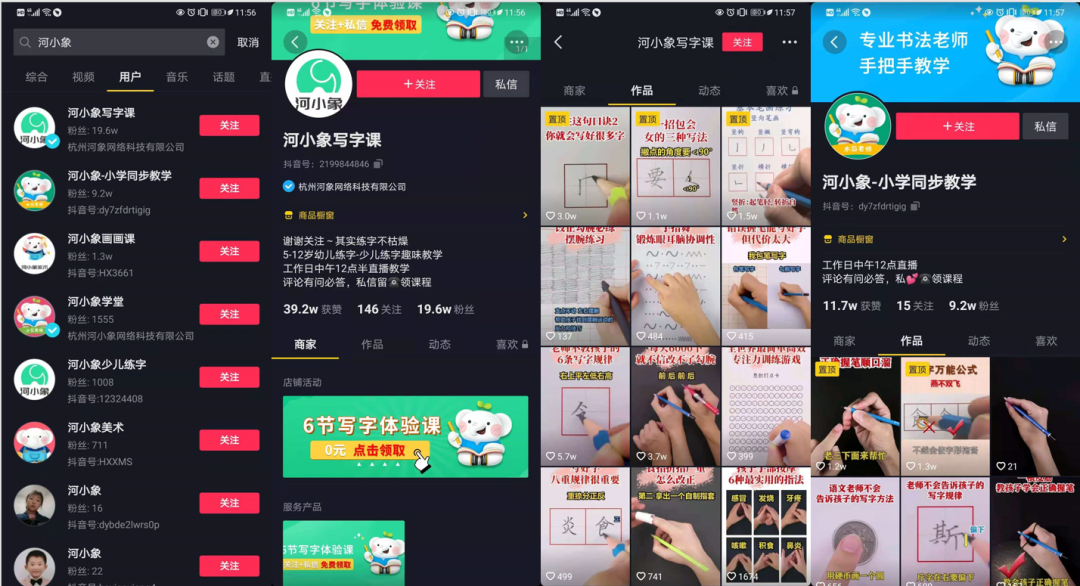 相比較公眾號,短視頻矩陣就顯得沒有那么復(fù)雜。主要針對的時兒童練字賽道,并且更新的視頻也是和寫字有關(guān),強化用戶的認知。