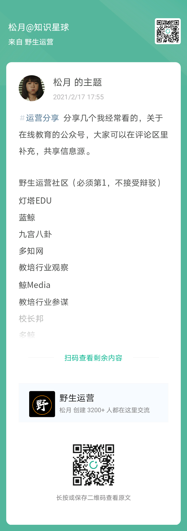 1、松月:關(guān)于在線教育常看公眾號(hào)(掃碼看全文)