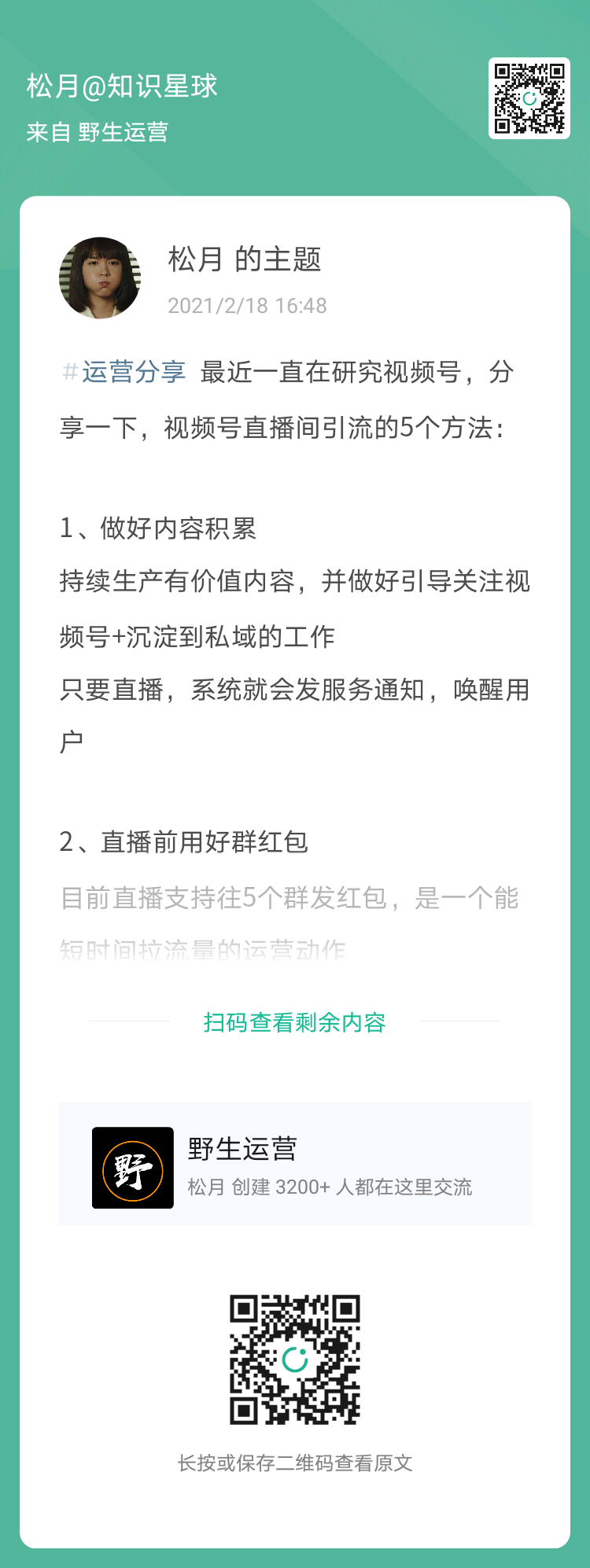 2、松月:視頻號(hào)直播間引流的5個(gè)方法(掃碼看全文)
