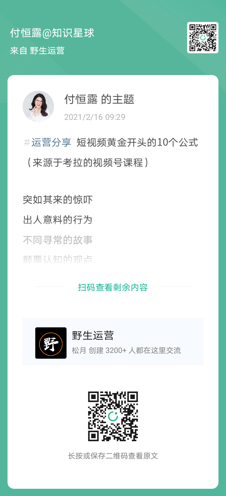 3、付恒露:短視頻黃金開頭的10個(gè)公式(掃碼看全文)