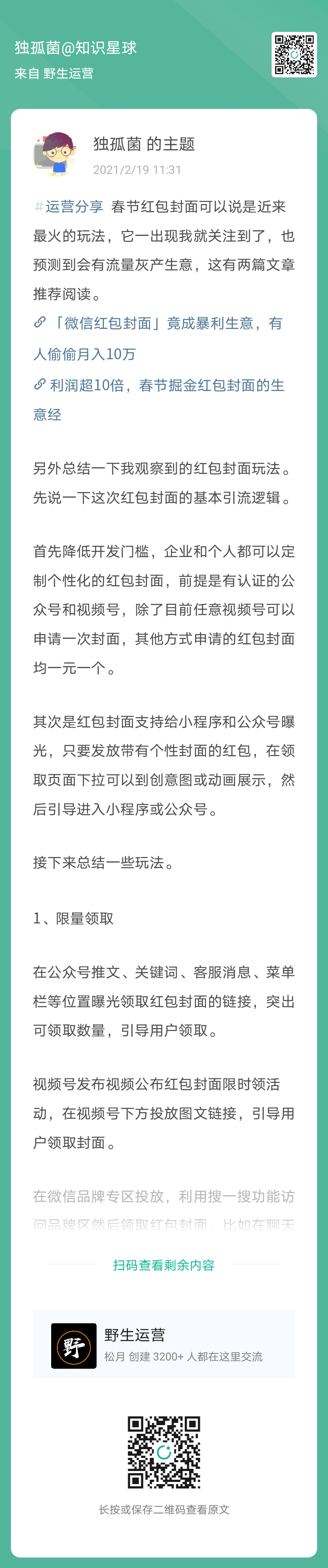 8、獨(dú)孤菌:總結(jié)紅包封面玩法(掃碼看全文)