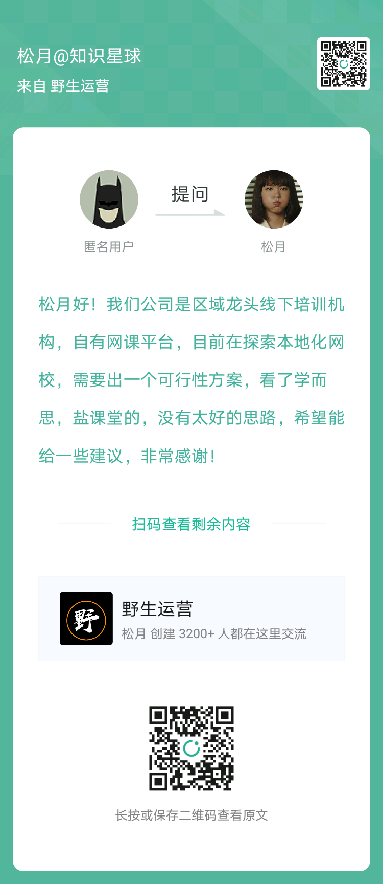 2、提問:目前在探索本地化網(wǎng)校,請(qǐng)問有什么好案例參考嗎?(掃碼看全文)