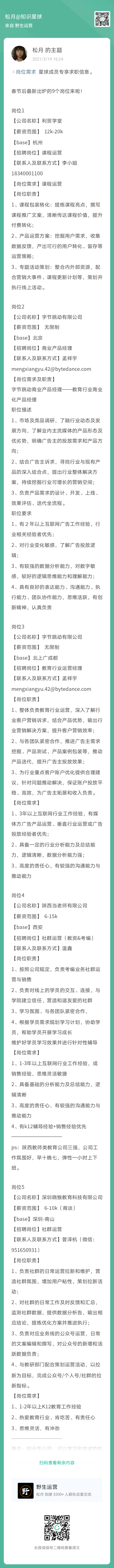 上周更新了字節(jié)跳動(dòng)、核桃編程、高頓教育等崗位招聘信息,掃碼申請(qǐng)崗位?