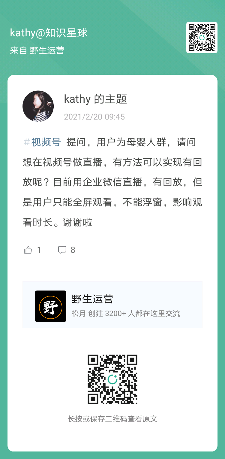 3、提問:想在視頻號(hào)做直播,有什么方法可以實(shí)現(xiàn)有回放?(掃碼看全文)
