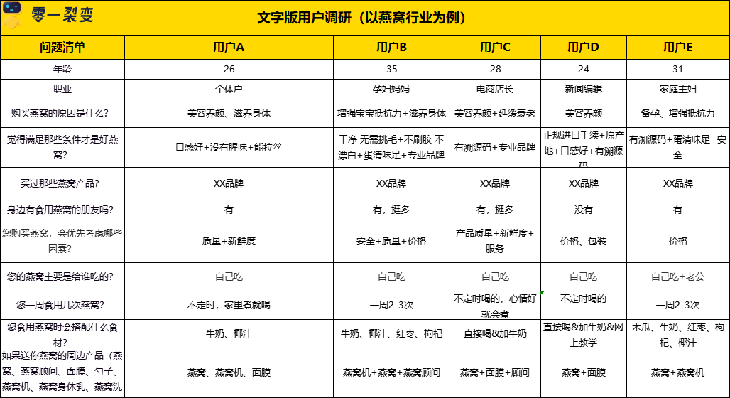 用戶需求調(diào)研首先要明確調(diào)研目的,為什么要做這一次的調(diào)研,清晰的調(diào)研能夠幫助項(xiàng)目迅速分類目標(biāo)用戶,建立清晰的用戶畫像。