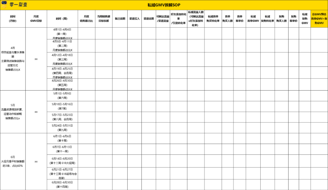 ② 既定的目標(biāo)GMV,如何把目標(biāo)分拆到每月每周中,同時(shí)倒推需要多少流量資源支持。