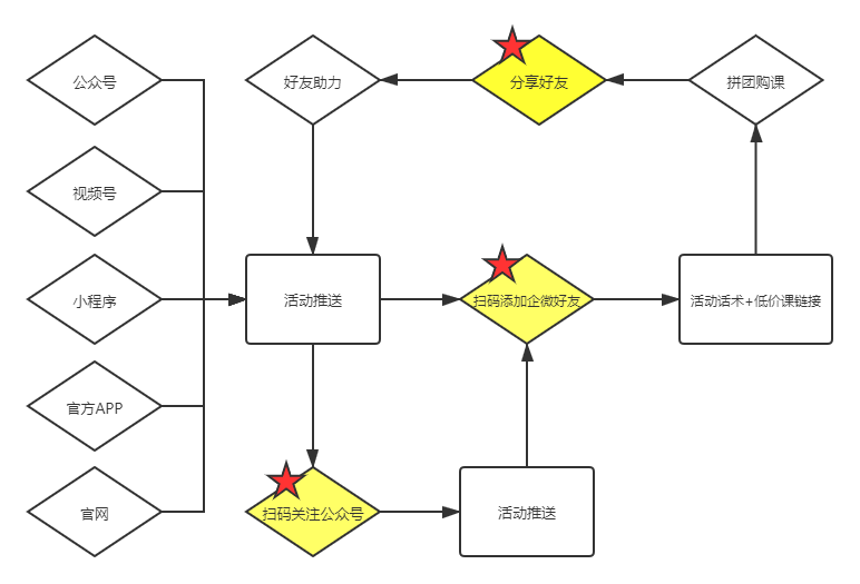 因此讓新用戶(hù)先關(guān)注微信公眾號(hào),再引導(dǎo)添加企業(yè)微信參加活動(dòng),可以有效地杜絕大部分無(wú)效用戶(hù)進(jìn)入私域流量池。
