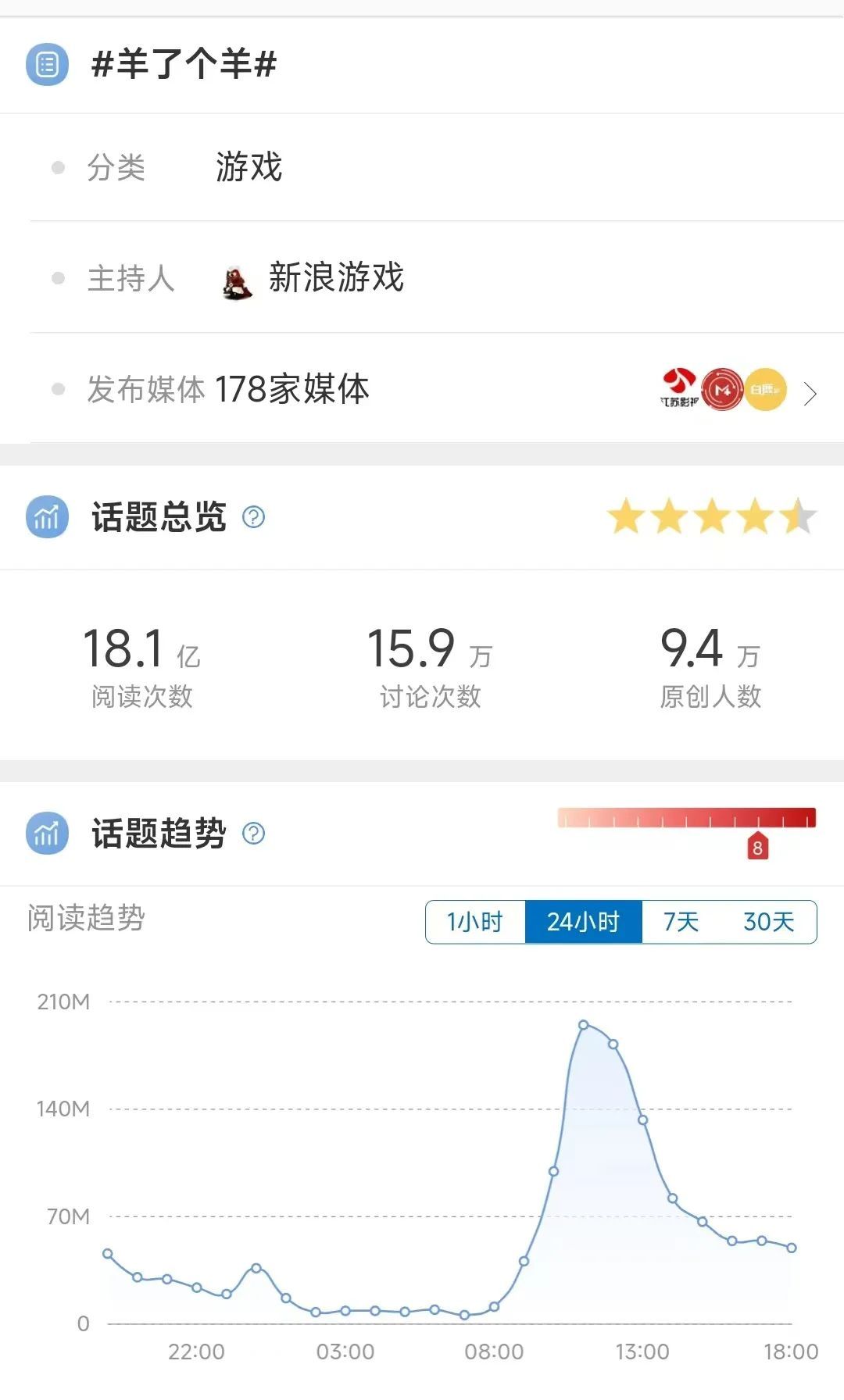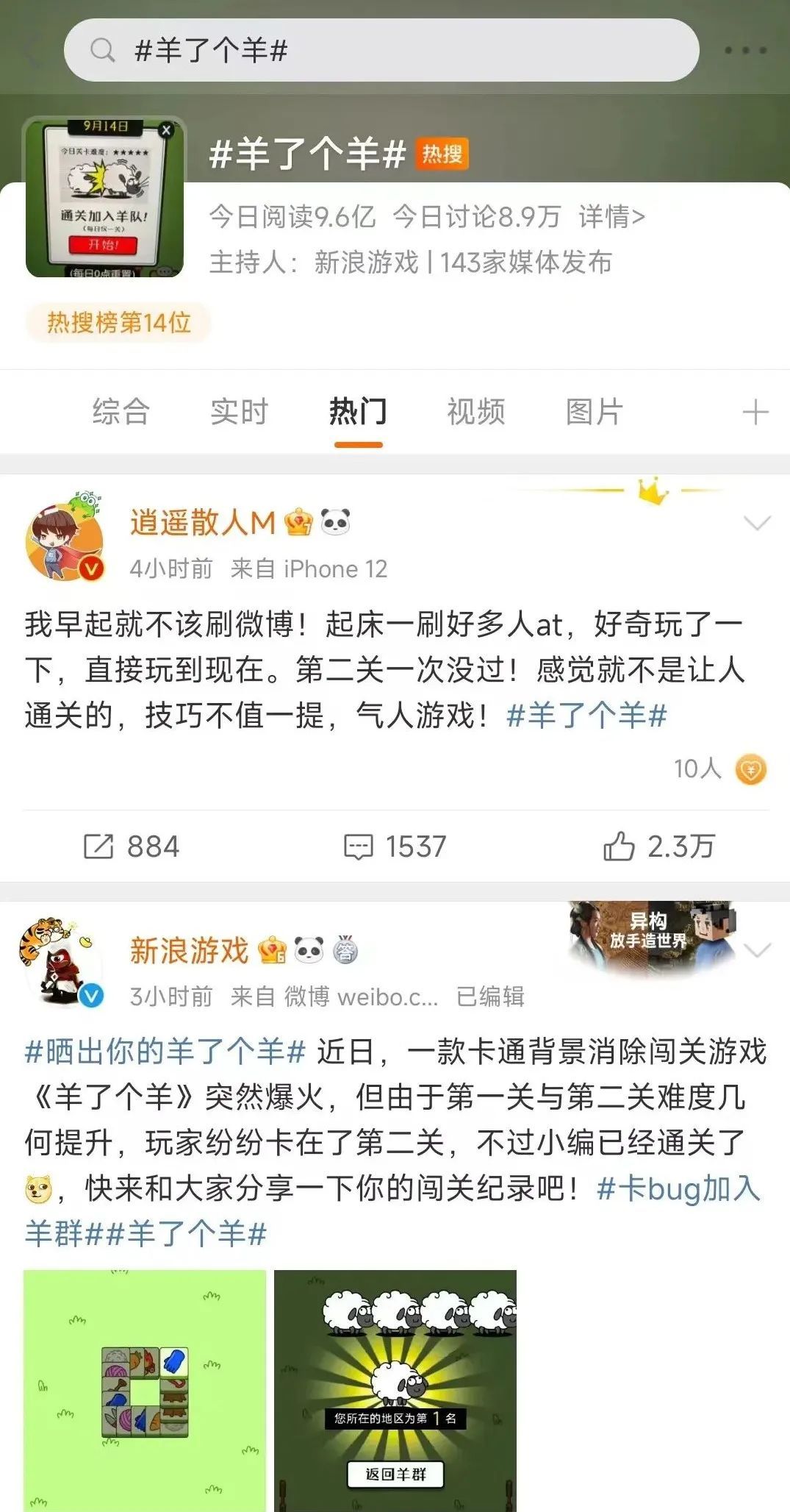 答案是:新浪微博自己。#羊了個(gè)羊#話題熱門微博
