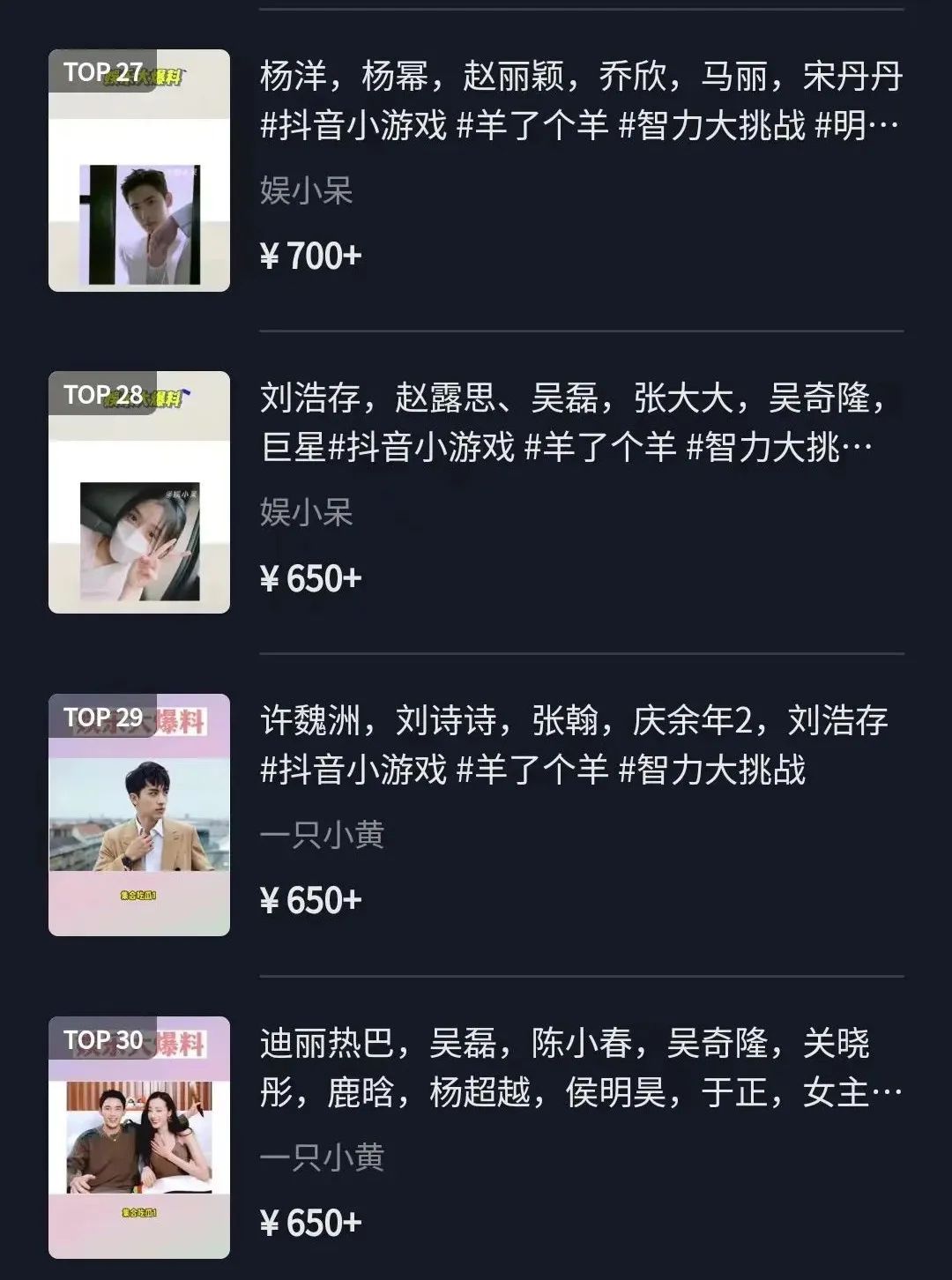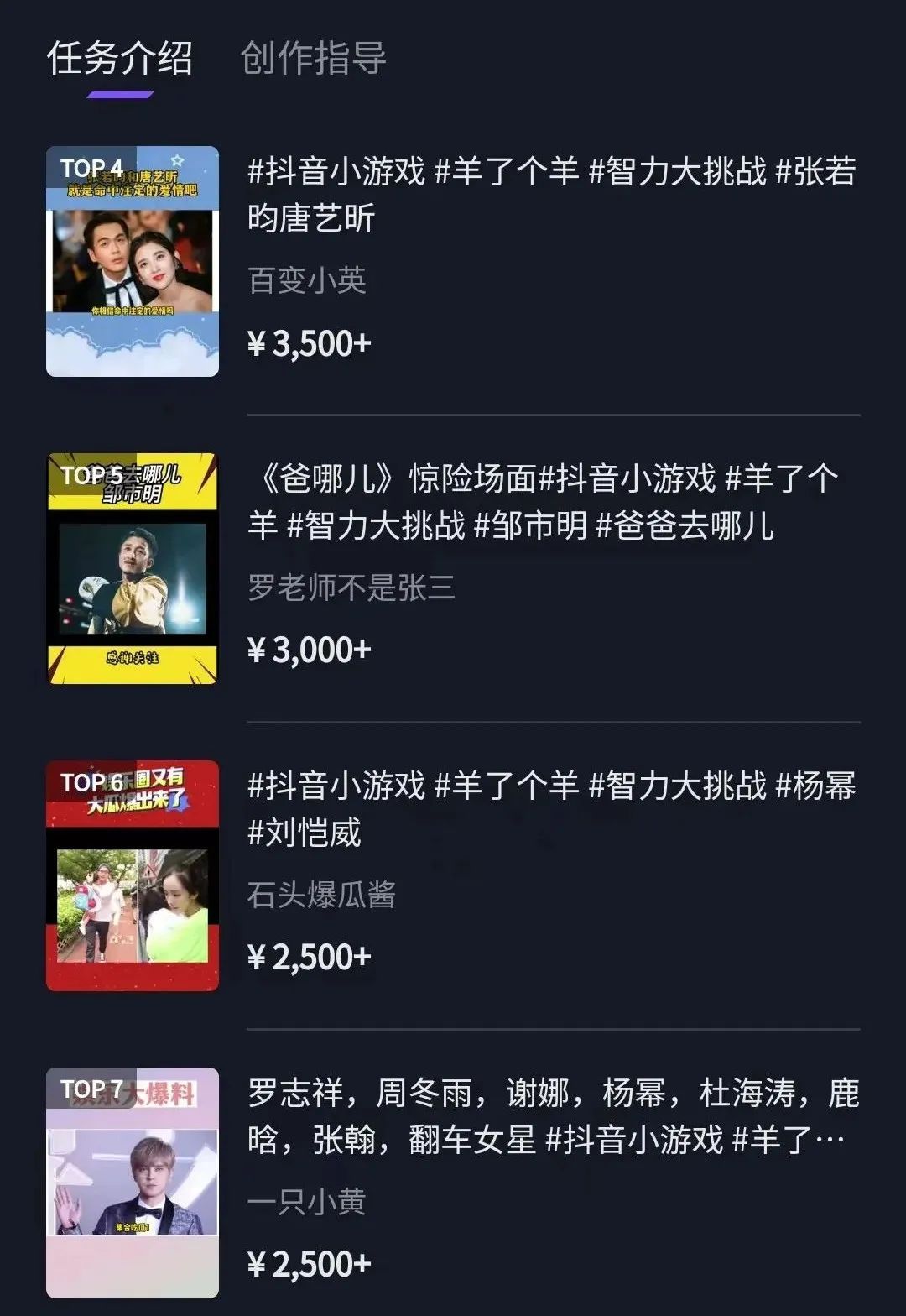 一批娛樂爆料吃瓜號(hào)在任務(wù)中成為傳播量的扛把子,除畫面以外,內(nèi)容與《羊了個(gè)羊》并沒有什么關(guān)系。這對(duì)老老實(shí)實(shí)生產(chǎn)內(nèi)容的游戲達(dá)人而言,簡(jiǎn)直是娛樂八卦號(hào)的降維打擊!