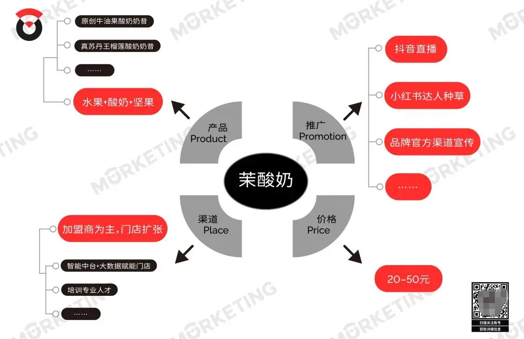 為了更清晰的了解茉酸奶的“成名路”,Morketing將從“4P”的角度進(jìn)行拆解: